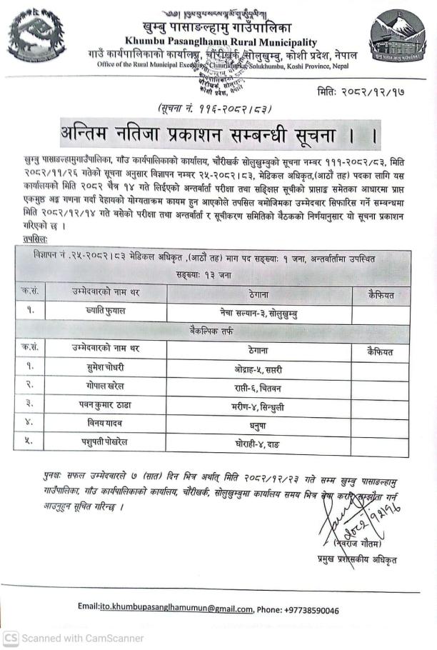 / अन्तिम नतिजा प्रकाशन सम्बन्धी सूचना । | खुम्बु पासाङल्हामु गाउँपालिका(Khumbu Pasang Lhamu Rural Municipality)