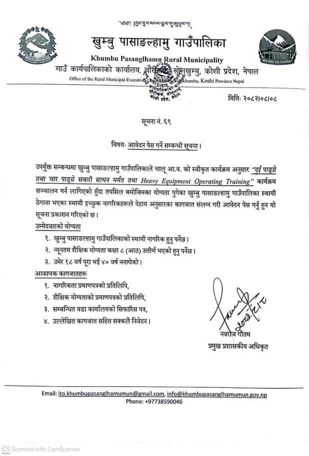 / आवेदन पेश गर्ने सम्बन्धी सूचना । | खुम्बु पासाङल्हामु गाउँपालिका(Khumbu Pasang Lhamu Rural Municipality)