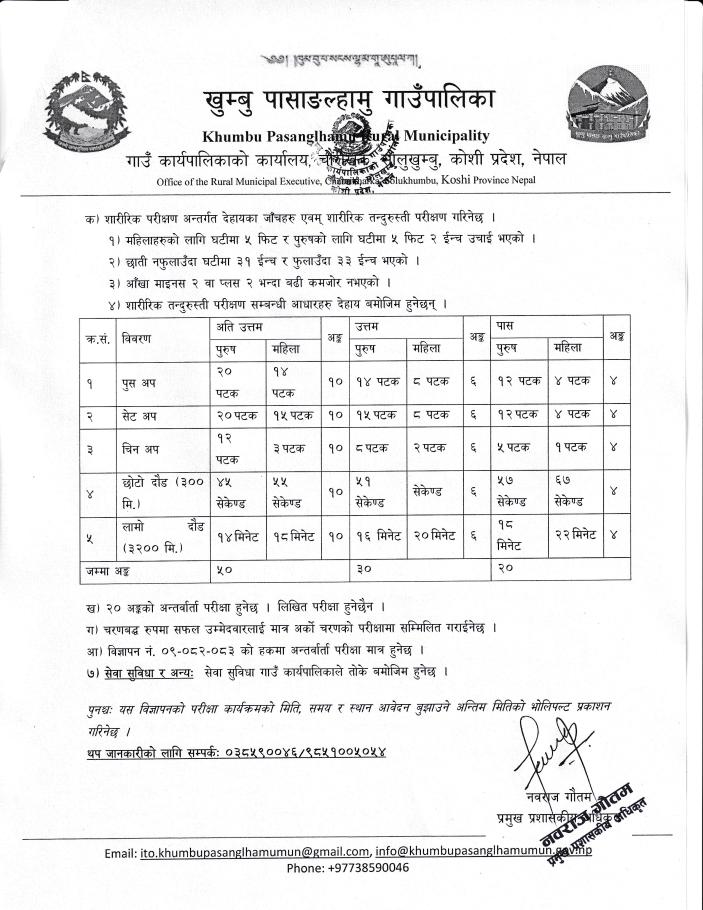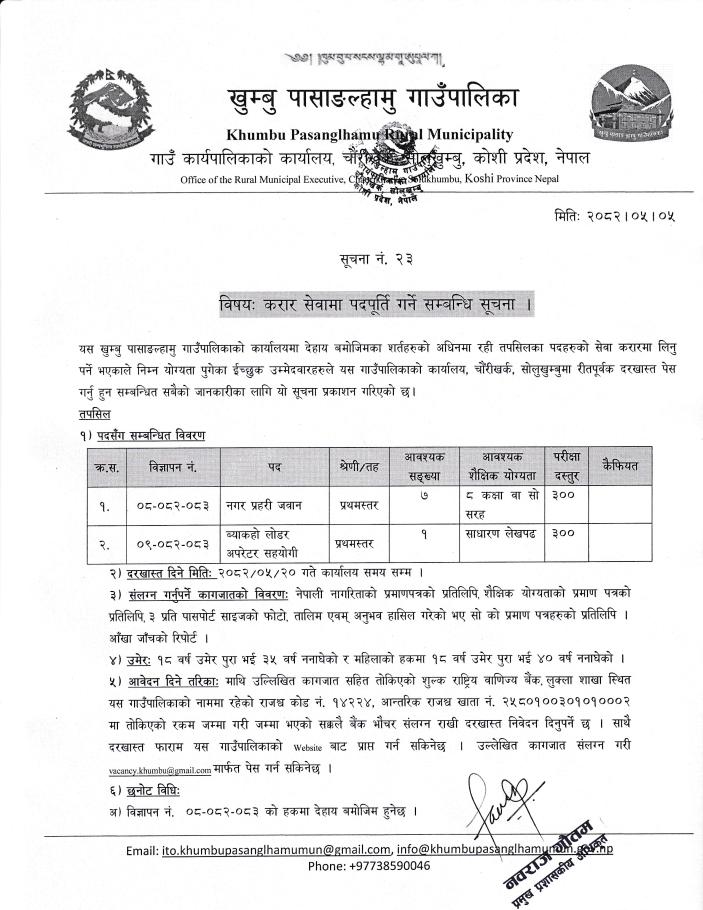 / करार सेवामा पदपूर्ति गर्ने सम्बन्धी सूचना ।। | खुम्बु पासाङल्हामु गाउँपालिका(Khumbu Pasang Lhamu Rural Municipality)
