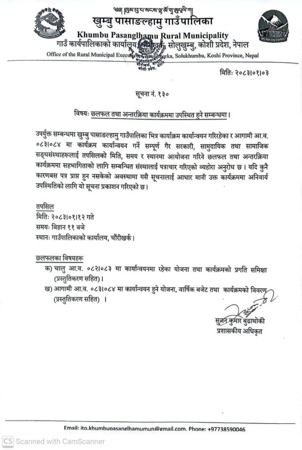 / छलफल तथा अन्तरक्रिया कार्यक्रममा उपस्थित हुने सम्बन्धमा। | खुम्बु पासाङल्हामु गाउँपालिका(Khumbu Pasang Lhamu Rural Municipality)
