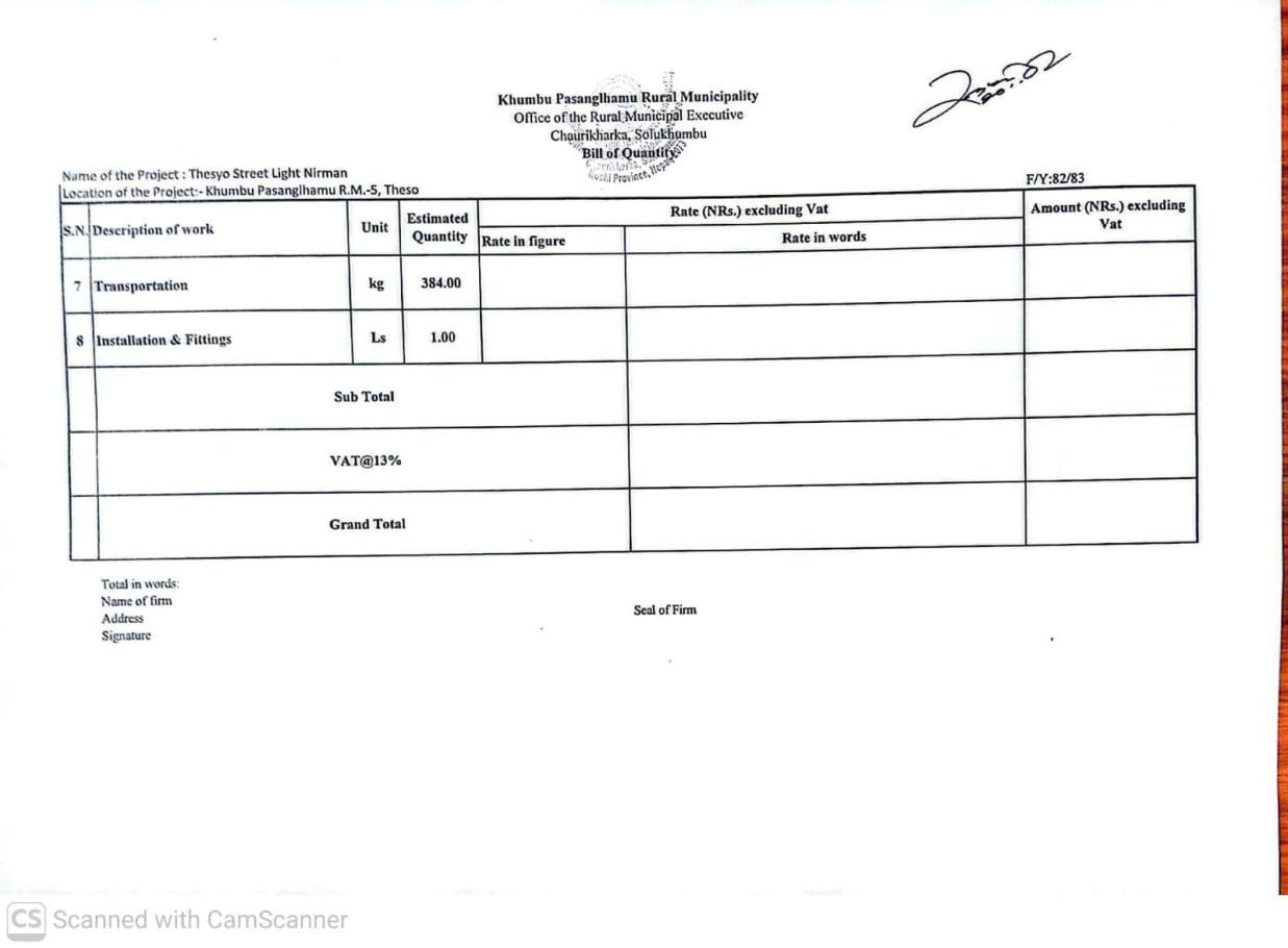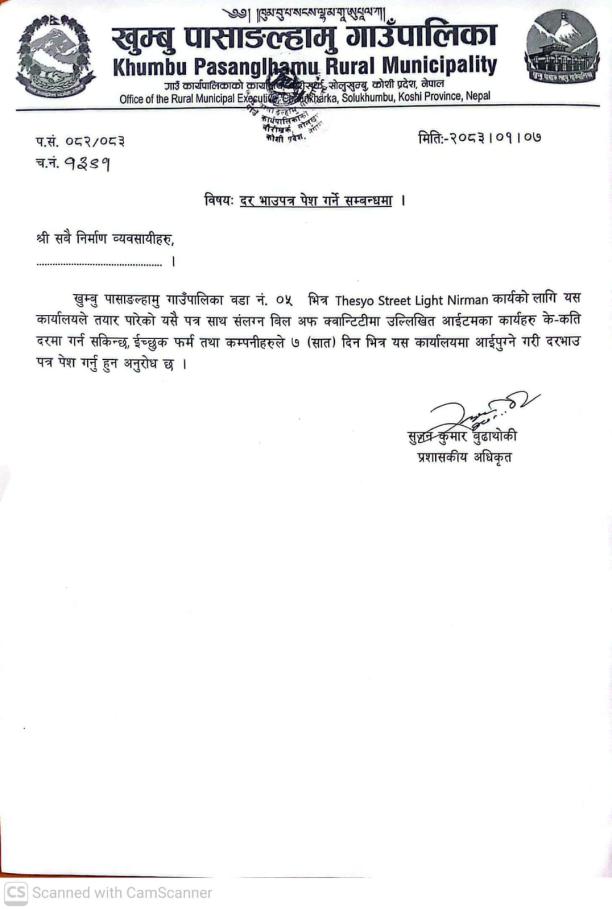 / दर भाउपत्र पेश गर्ने सम्बन्धमा । | खुम्बु पासाङल्हामु गाउँपालिका(Khumbu Pasang Lhamu Rural Municipality)