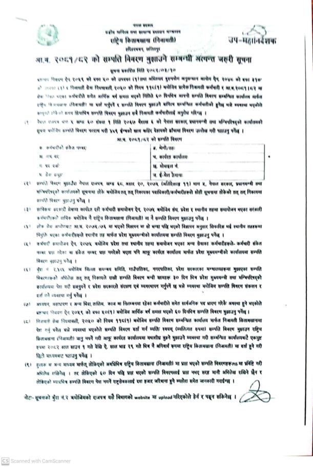 सम्पत्ति विवरण बुझाउने सम्बन्धी सूचना ।।