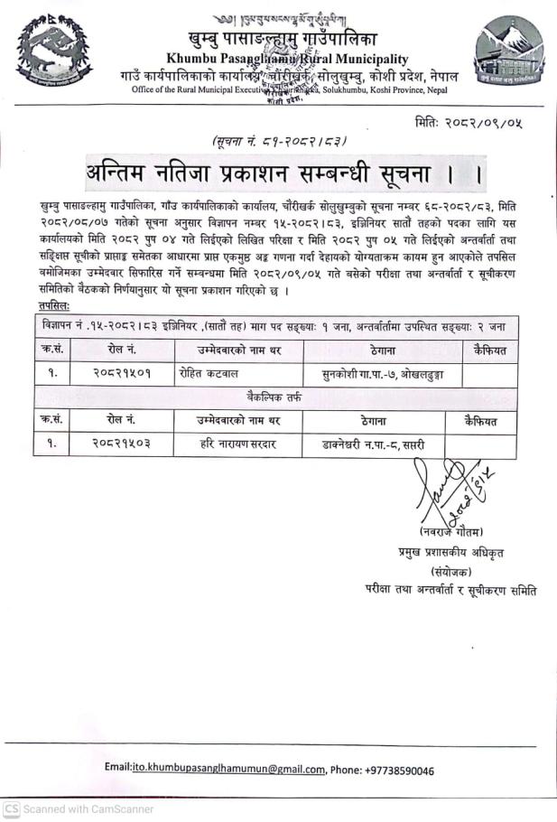 / अन्तिम नतिजा प्रकाशन सम्बन्धी सूचना । | खुम्बु पासाङल्हामु गाउँपालिका(Khumbu Pasang Lhamu Rural Municipality)