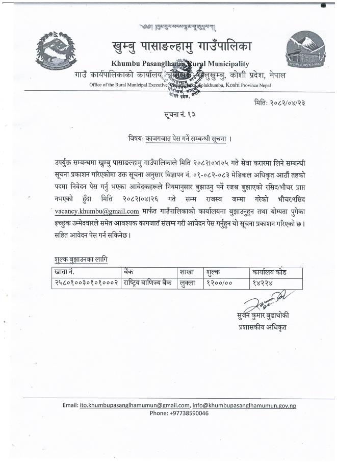 / कागजात पेश गर्ने सम्बन्धि सुचना । | खुम्बु पासाङल्हामु गाउँपालिका(Khumbu Pasang Lhamu Rural Municipality)