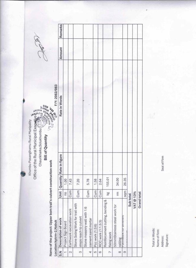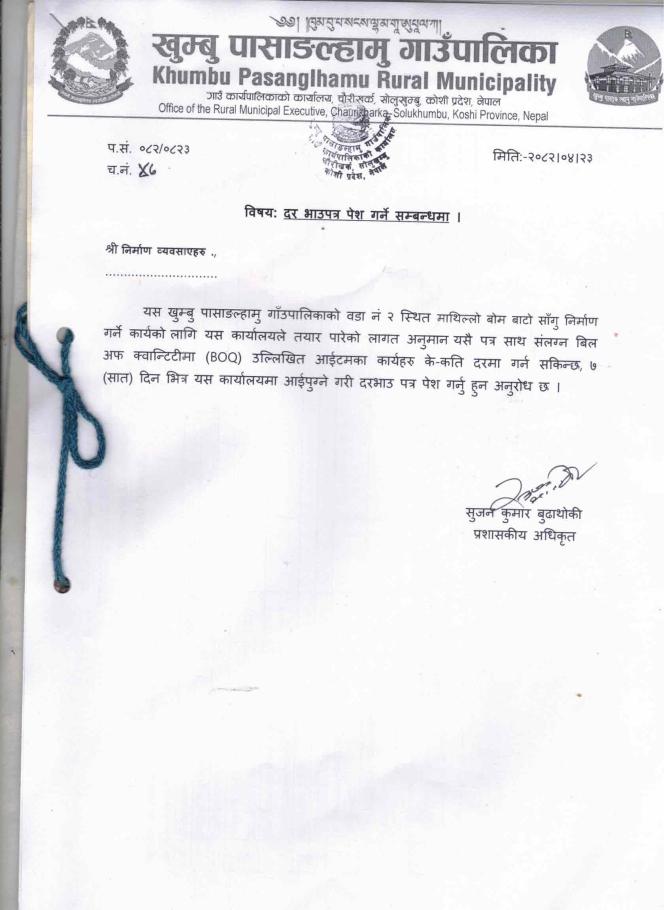 / दर भाउपत्र पेश गर्ने सम्बन्धमा-वडा नं. २ बोम बाटो | खुम्बु पासाङल्हामु गाउँपालिका(Khumbu Pasang Lhamu Rural Municipality)