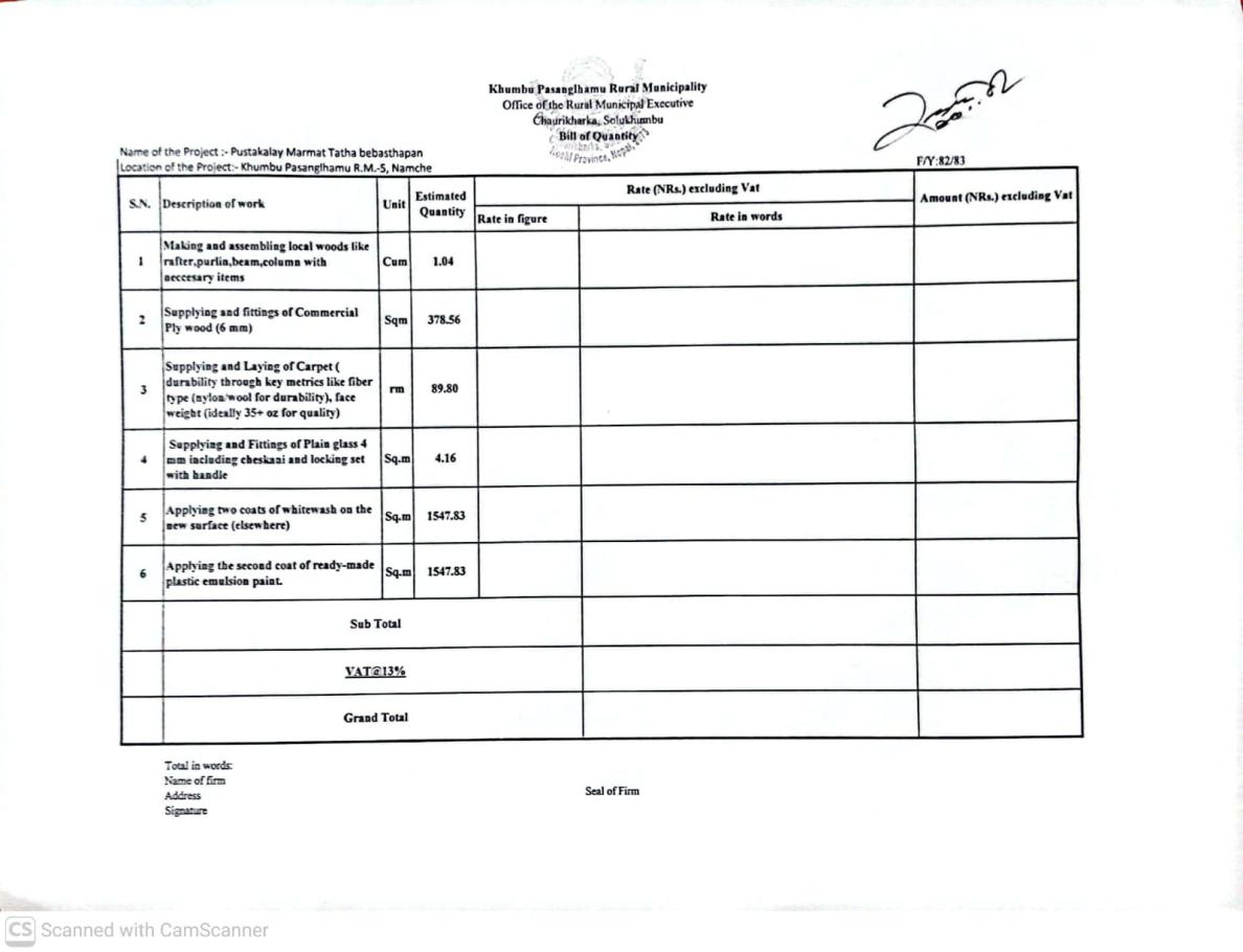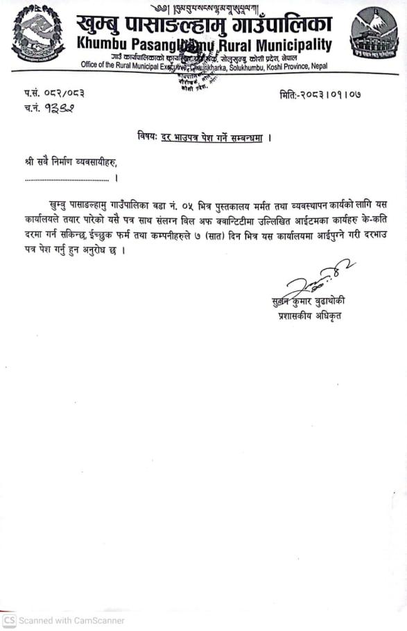 / दर भाउपत्र पेश गर्ने सम्बन्धमा । | खुम्बु पासाङल्हामु गाउँपालिका(Khumbu Pasang Lhamu Rural Municipality)