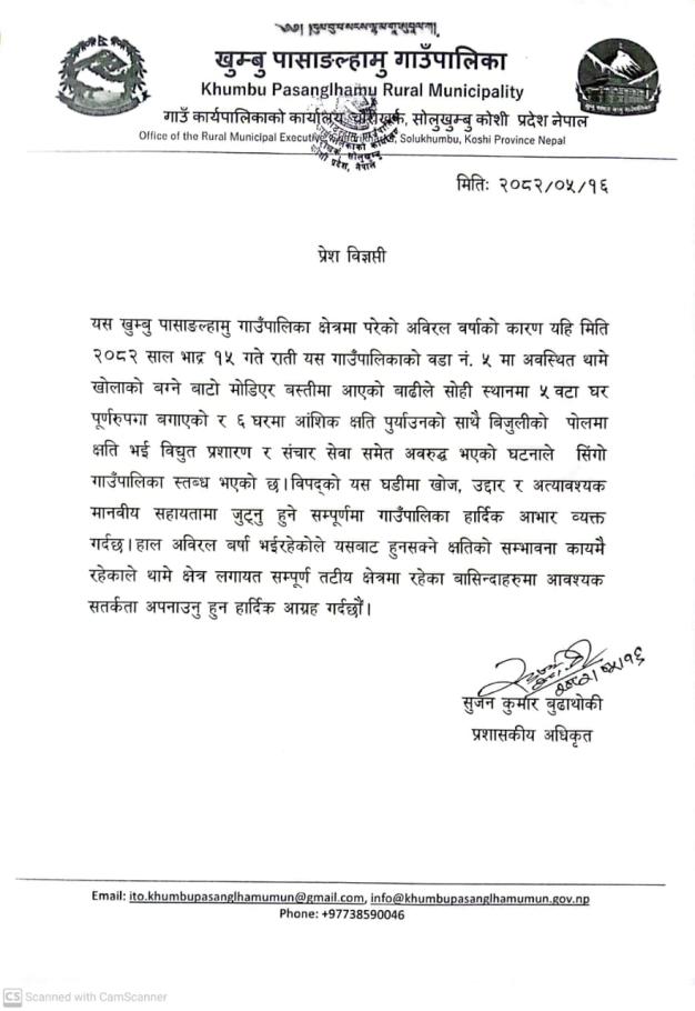 / प्रेस विज्ञप्ती | खुम्बु पासाङल्हामु गाउँपालिका(Khumbu Pasang Lhamu Rural Municipality)