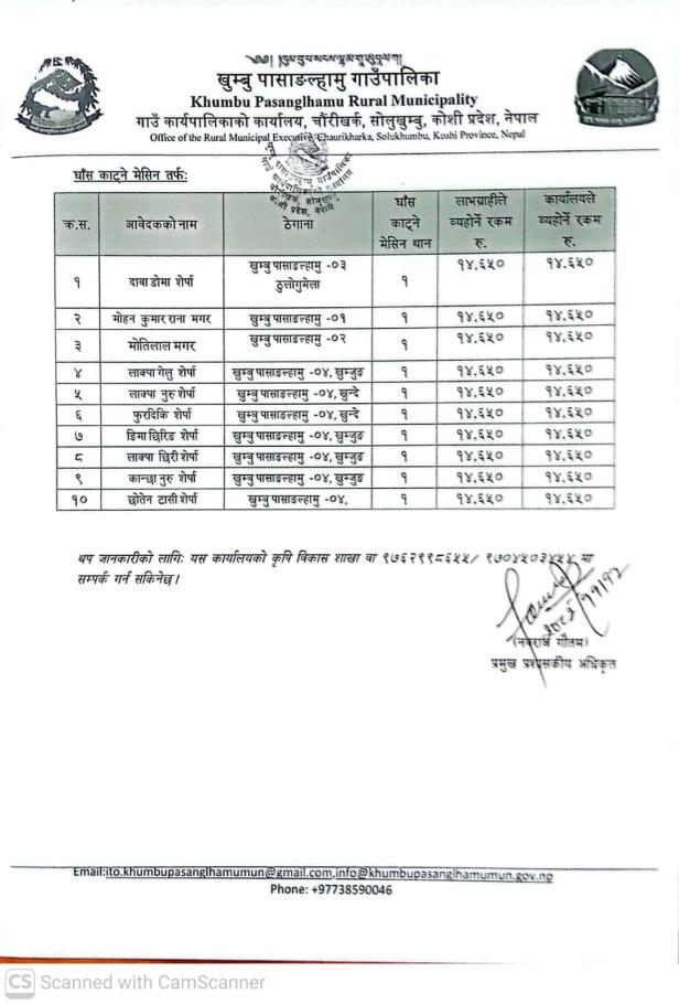 / ५० प्रतिशत लागत साझेदारीमा कृषिजन्य उपकरण वितरण (मिनि टिलर र ग्रास कटर) कार्यक्रम अन्तर्गतका लाभग्राही छनौट सम्बन्धि सुचना।। | खुम्बु पासाङल्हामु गाउँपालिका(Khumbu Pasang Lhamu Rural Municipality)