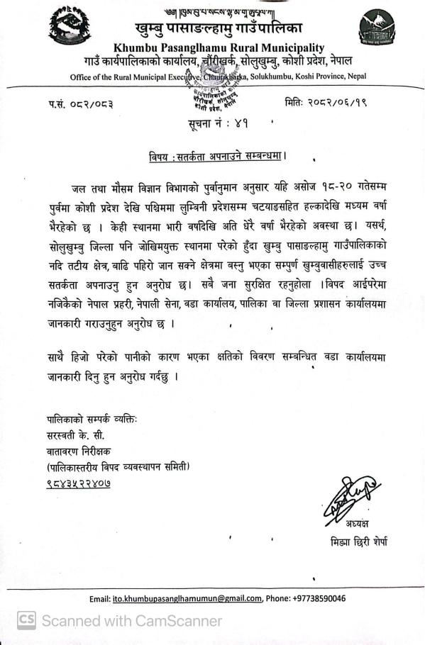 / सतर्कता अपनाउने सम्बन्धमा । | खुम्बु पासाङल्हामु गाउँपालिका(Khumbu Pasang Lhamu Rural Municipality)
